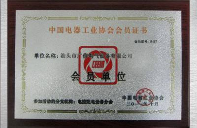 廣東省電氣行業(yè)協(xié)會會員單位證書